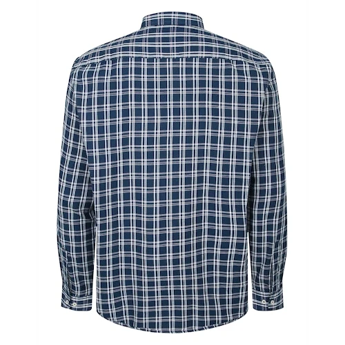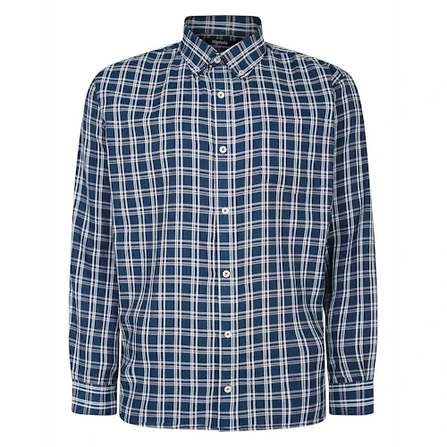 Bigdude Button Down Long Sleeve Check Shirt Bright Navy