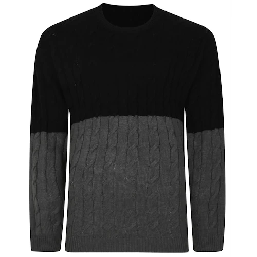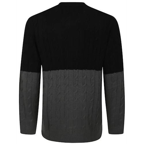 Bigdude Cable Knit Colour Block Jumper Black/Charcoal