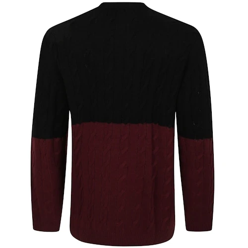 Bigdude Cable Knit Colour Block Jumper Burgundy/Black