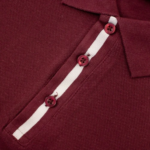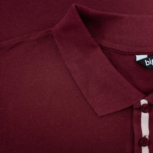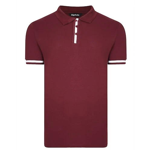Bigdude Contrast Stripe Placket With Tipped Cuff Polo Shirt Burgundy