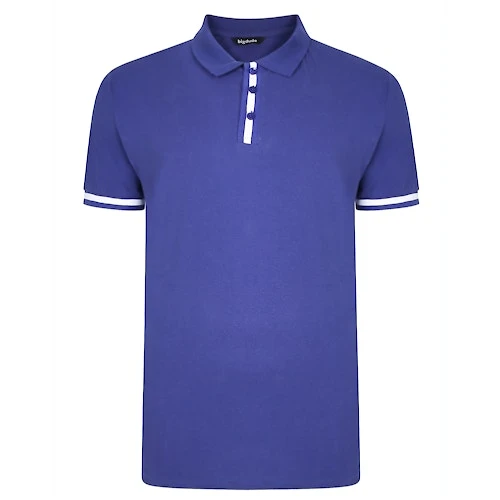 Bigdude Contrast Stripe Placket With Tipped Cuff Polo Shirt Cobalt
