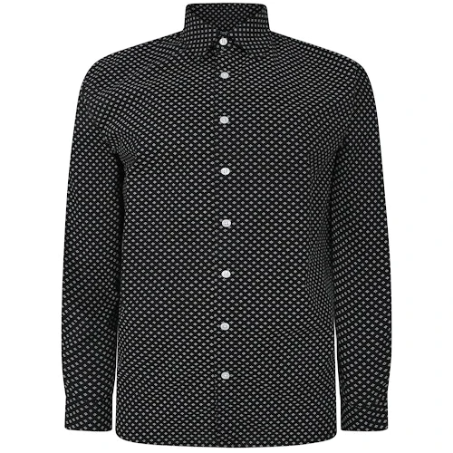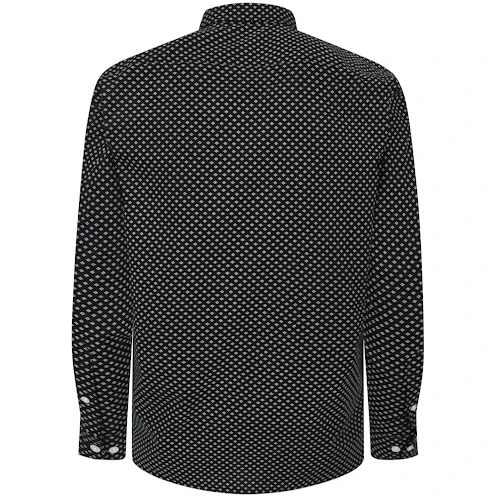 Bigdude Geometric Print Long Sleeve Poplin Shirt Black