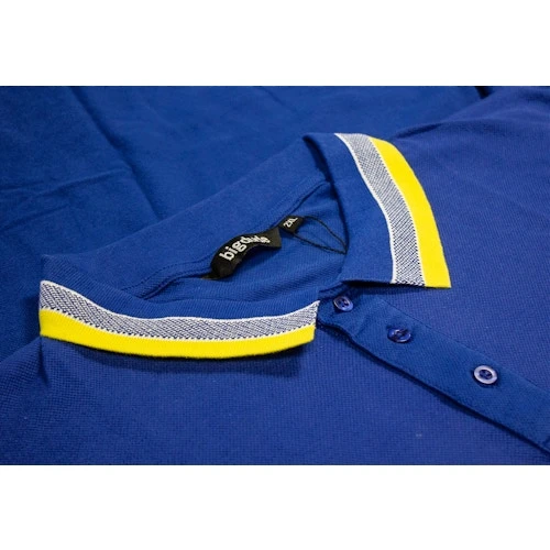 – Yellow and blue striped collar and cuffs