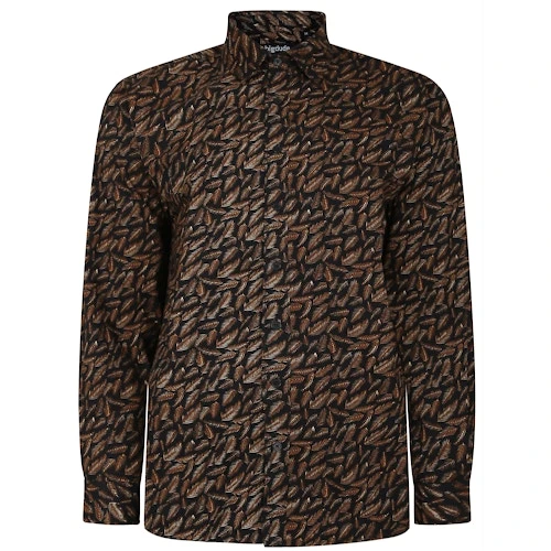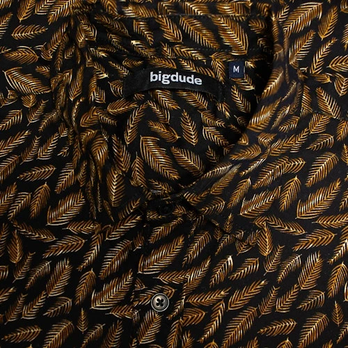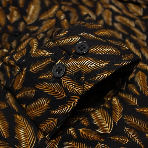 Bigdude Leaf Print Long Sleeve Poplin Shirt Black