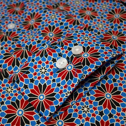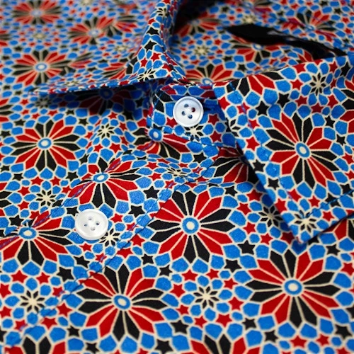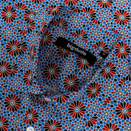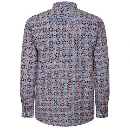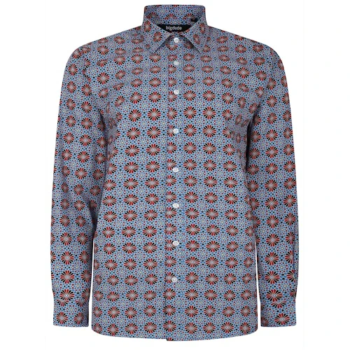 Bigdude Retro Flower Print Long Sleeve Poplin Shirt Blue/Red