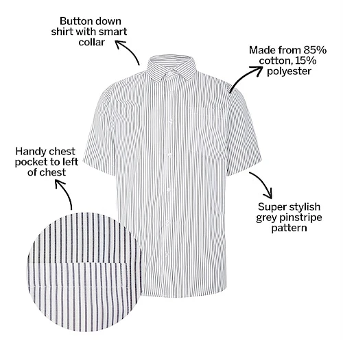 Bigdude Striped Short Sleeve Shirt Grey/White