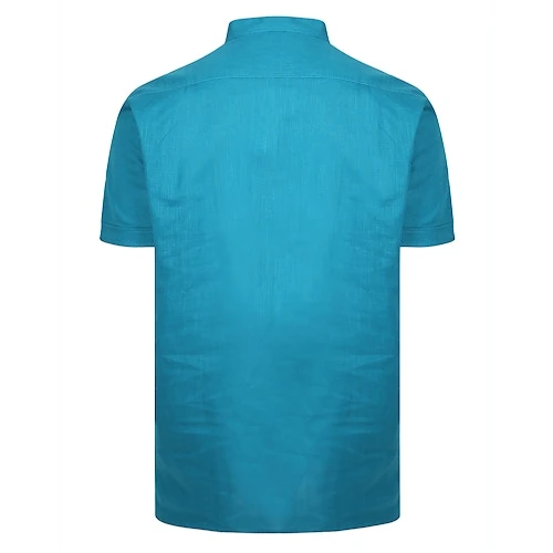 Bigdude Woven Linen Grandad Collar Short Sleeve Shirt Turqouise
